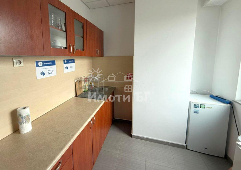 IMOTIBG offers a rented office in a representative new business building with luxurious common areas, situated on the Blvd. The Shipka pass near numerous public transport stops. The office is an original type of Open Space (currently separated into several rooms), kitchen, private bathroom. The building is high class-double floor, suspended ceiling, joinery with K-Glass, full wiring, two elevators, security and CCTV.