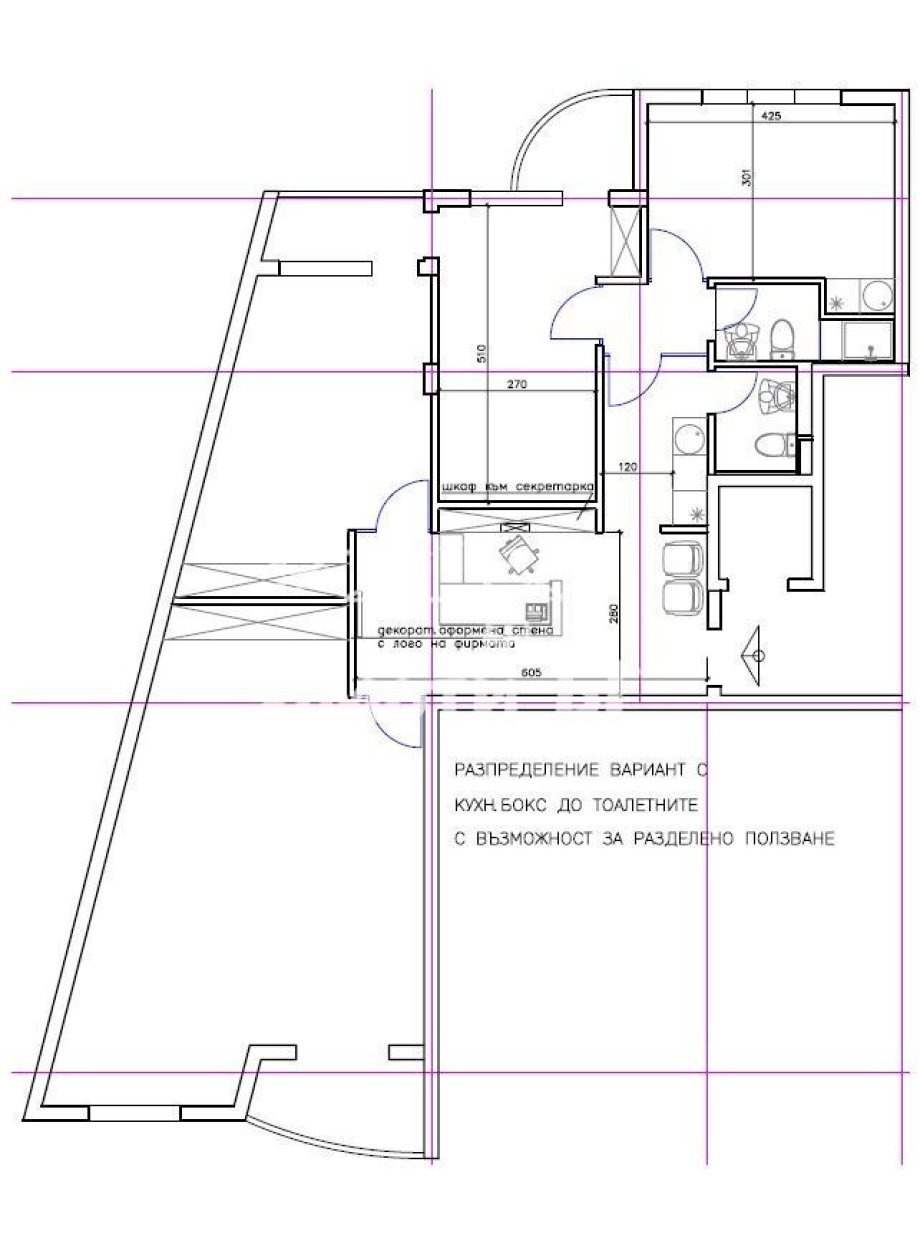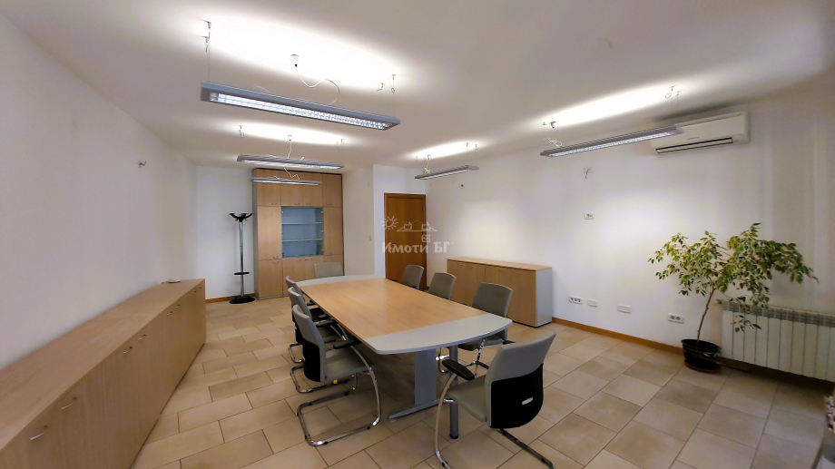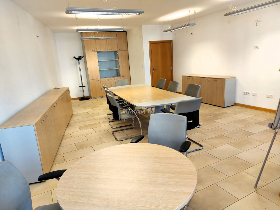 IMOTI BG offers a fully furnished office in a modern office building, situated on the corner of Simeonovsko Shosse Blvd. and Prof.Ivan Stranski Str.. The building is with a well-maintained common areas, security and elevator. Layout: the office space is functionally arranged and includes: entrance zone with a reception area, spacious meeting room, three separate office rooms, each with a balcony, fully equipped kitchenette, two service rooms. Technical characteristics: AC in each rooms, central heating, full cabling, access control system and videomonitoring, life security guard of the building. The office is modern and functional, fully equipped, suitable for a medium-sized team. Includes comfortable desks with enough cabinets and drawers for storage and organizing of documents. In front of the building there are stops of buses 102. 805 and 67, which provided fast connection with the Centre of Sofia and Metro stations 1 and 2. Garbage tax and maintenance fee are at the expense of the tenant. Maintenance fee - 170 EUR per month. Possibility to be rented and underground garage with a size of 24 sq.m. against an extra monthly rent of 110 EUR and maintenance fee of the garage of 120 EUR/year. Prices are excl. VAT.