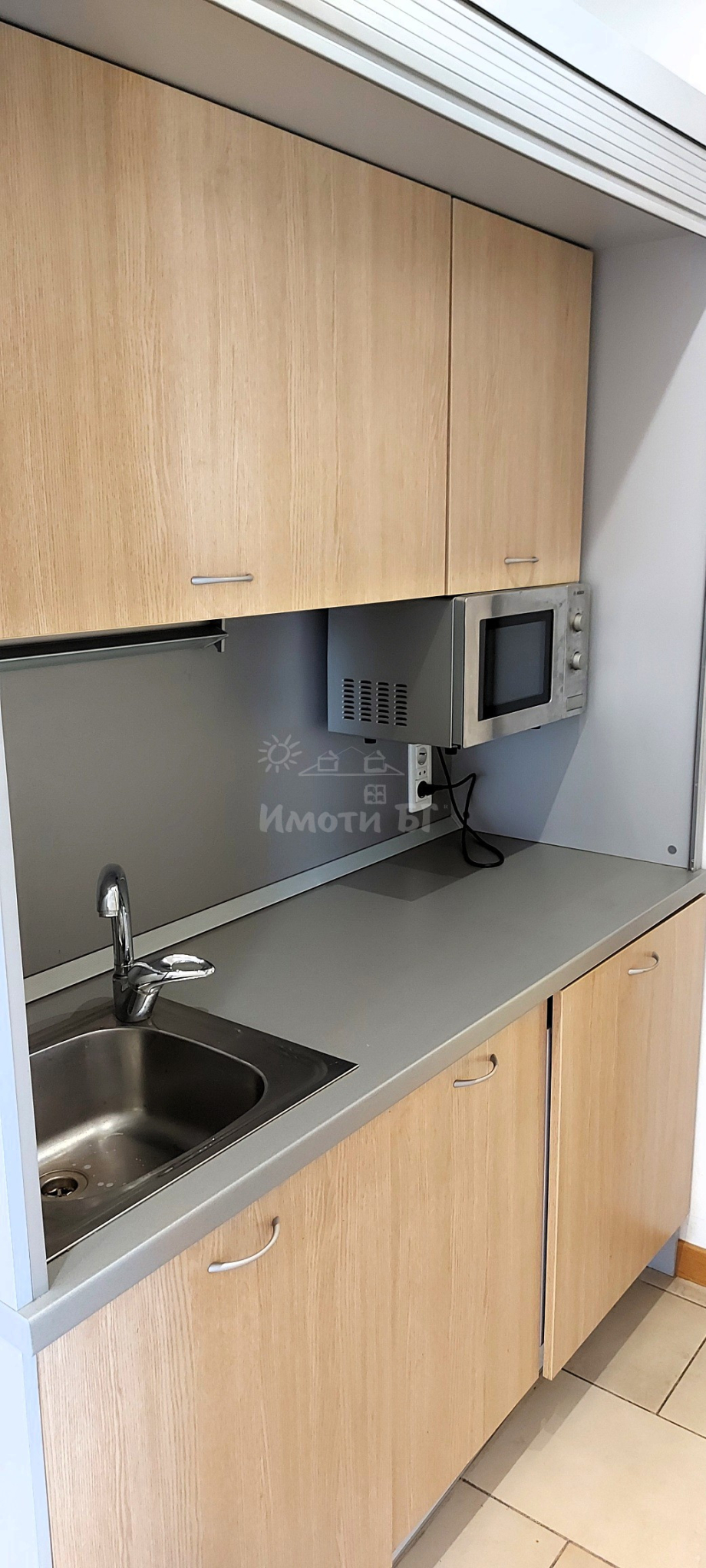 IMOTI BG offers a fully furnished office in a modern office building, situated on the corner of Simeonovsko Shosse Blvd. and Prof.Ivan Stranski Str.. The building is with a well-maintained common areas, security and elevator. Layout: the office space is functionally arranged and includes: entrance zone with a reception area, spacious meeting room, three separate office rooms, each with a balcony, fully equipped kitchenette, two service rooms. Technical characteristics: AC in each rooms, central heating, full cabling, access control system and videomonitoring, life security guard of the building. The office is modern and functional, fully equipped, suitable for a medium-sized team. Includes comfortable desks with enough cabinets and drawers for storage and organizing of documents. In front of the building there are stops of buses 102. 805 and 67, which provided fast connection with the Centre of Sofia and Metro stations 1 and 2. Garbage tax and maintenance fee are at the expense of the tenant. Maintenance fee - 170 EUR per month. Possibility to be rented and underground garage with a size of 24 sq.m. against an extra monthly rent of 110 EUR and maintenance fee of the garage of 120 EUR/year. Prices are excl. VAT.