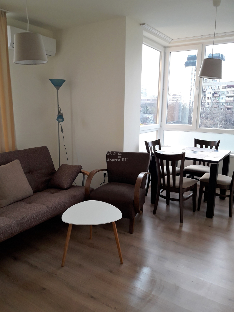 Fully and modernly furnished one-bedroom apartment in a representative new building with video surveillance in Mladost 3, next to a stop of Al.Malinov metro station; layout: living room with kitchenette /sofas, built-in fully equipped kitchen, dining table with chairs, air conditioning, LCD TV/+ south-facing balcony, private bedroom /sleeping set/, bathroom with toilet /shower-screen/, wet room /washing machine/; high quality construction and finishing; central heating + air conditioning; the apartment is available immediately!