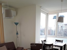 Fully and modernly furnished one-bedroom apartment in a representative new building with video surveillance in Mladost 3, next to a stop of Al.Malinov metro station; layout: living room with kitchenette /sofas, built-in fully equipped kitchen, dining table with chairs, air conditioning, LCD TV/+ south-facing balcony, private bedroom /sleeping set/, bathroom with toilet /shower-screen/, wet room /washing machine/; high quality construction and finishing; central heating + air conditioning; the apartment is available immediately!