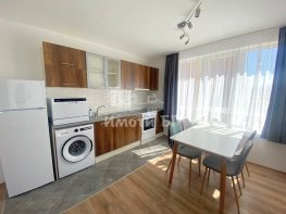 Distribution: entrance hall, living room with kitchenette and dining area, two separate bedrooms, two bathrooms with toilets, terrace. The apartment is facing west, entirely internal, warm in winter, very bright and sunny. It is fully furnished, and the second bedroom can be equipped according to the needs of the first tenants. The heating is through a central heating.