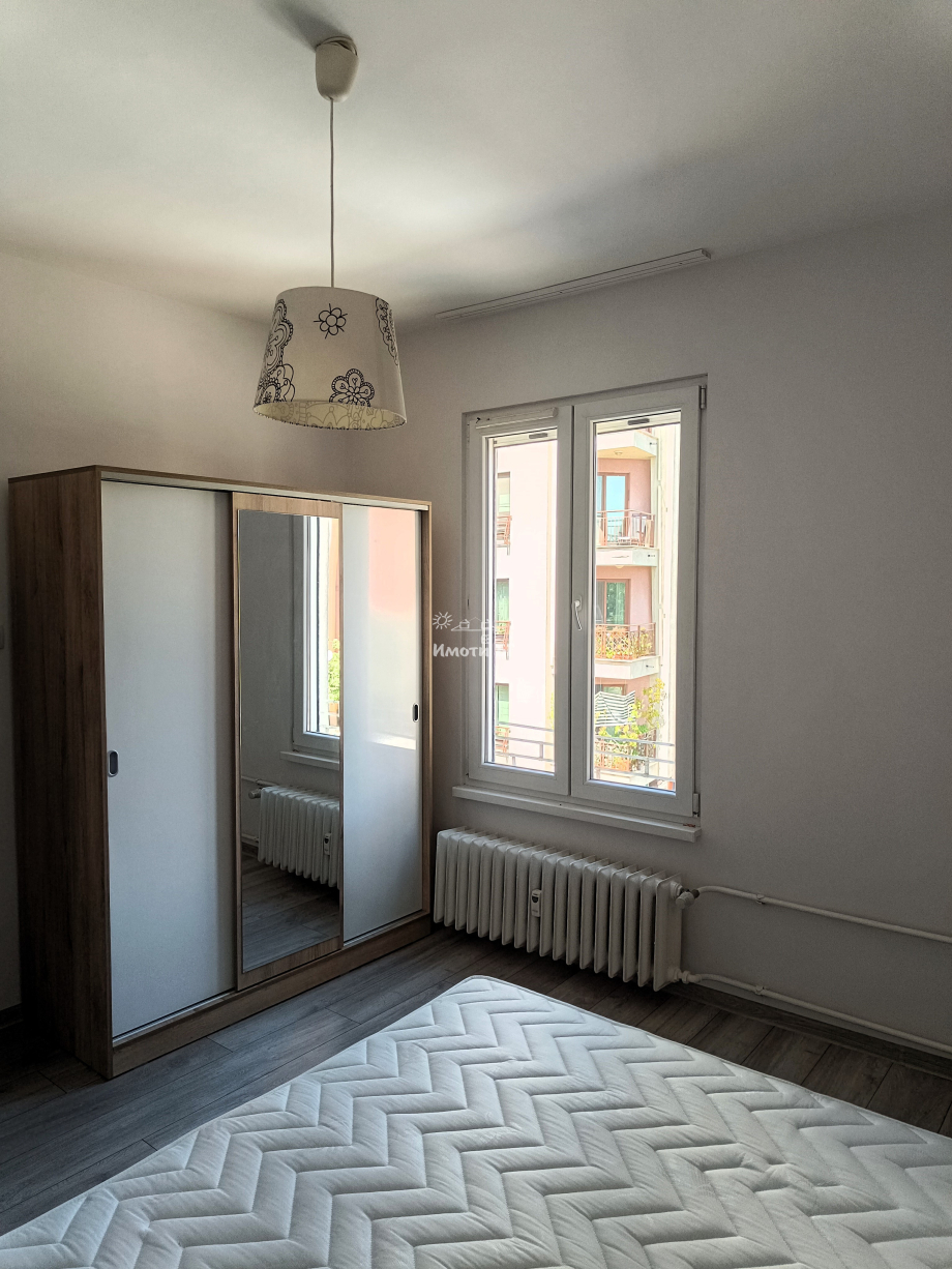 Напълно обзаведен, ремонтиран 2-стаен апартамент с отлично местоположение - непосредствено до 20 ДКЦ, 142-ро ОУ, 8 ОДЗ, автобусни и тролейбусни спирки. Разпределение: коридор, напълно оборудвана поръчкова кухня с вградени електроуреди и усвоен балкон, обзаведен хол + балкон с южно изложение, спалня със спален комплект, баня, тоалетна, килер /дрешник/; ново обзавеждане; отопление на ТЕЦ; вътрешен апартамент с ниски консумативни разходи; подови настилки - ламиниран паркет, теракот; свободно паркиране около блока;