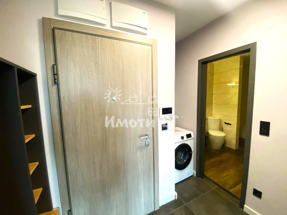 Имоти Бг има удоволствието да предложи НОВ просторен двустаен апартамент под наем. Перфектна локация - на метри от Мол София и метростанция, на 10 минути пешеходно разстояние от Президентството. Жилището е ситуирано на четвърти етаж в луксозна сграда - строителство 2023г. Разпределение: входно антре, обширен хол с кухня и трапезария, спалня, баня с тоалетна и тераса. Жилището е светло, с източно изложение. Отопление/ охлаждане посредством инверторни климатици висок клас. Предлага се напълно обзаведен и завършен по дизайнерски проект. Входът е с контрол на достъпа и видеодомофони. Има опция за наем на подземно паркомясто. Без домашни любимци. Свободен от 27.10.2025г. Огледи са възможни с предварителна уговорка.