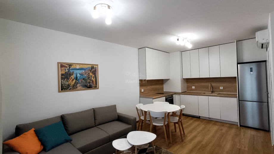 ИМОТИ БГ предлага под наем ЧИСТО НОВ, напълно обзаведен двустаен апартамент на ул.Андрей Ляпчев, в близост до УНСС, Техническия университет, спирки на градски транспорт, супермаркети и пр. Апартаментът е в представителна нова сграда от 2025 година с асансьор и ограничен достъп. Разпределение: входно антре, дневна с напълно оборудван кухненски бокс и излаз на просторен балкон с южно изложение, непреходна спалня със спален комплект, баня с тоалетна. Отопление на ток посредством климатици. Апартаментът е вътрешен, светъл, с висок клас дограма и ниски консумативни разходи. Не се допускат домашни любимци. Свободен за наемане веднага! КЛЮЧ в агенцията