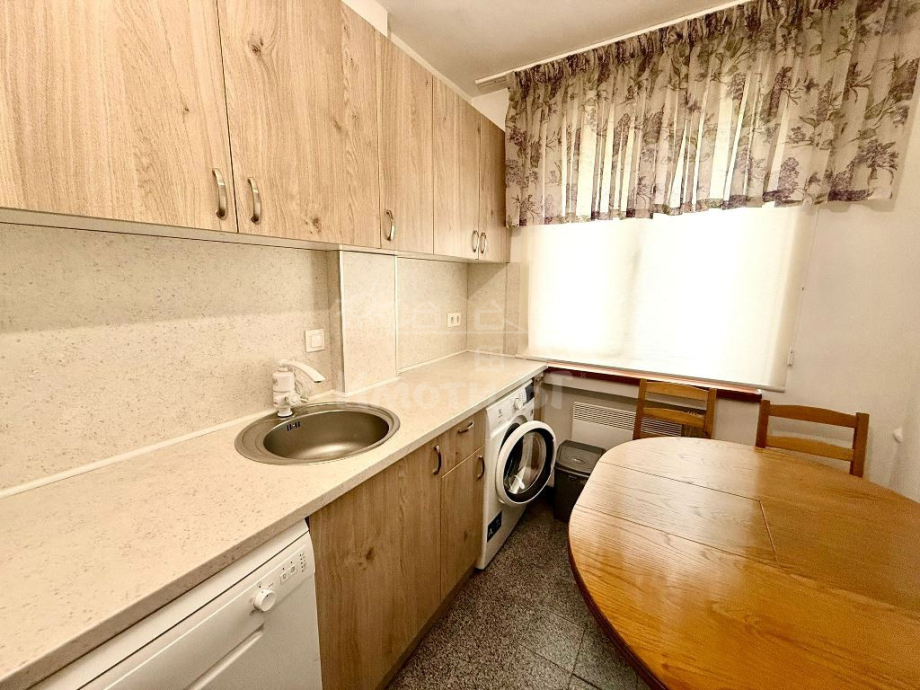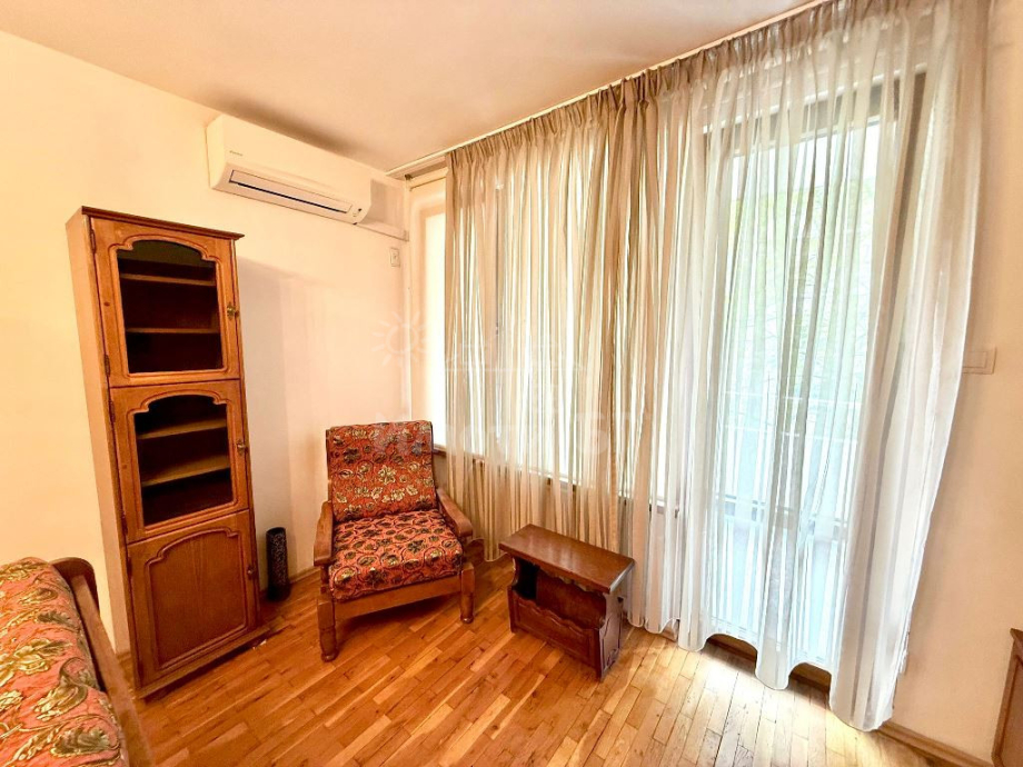 Просторен двустаен апартамент на отлично място в кв. Лозенец - на ул. Крум Попов. Жилището се състои от: входно антре, голям хол, отделна кухня, спалня, баня с тоалетна и тераса. Жилището е обзаведено с всичко необходимо, а кухнята е нова и напълно оборудвана с електроуреди. Апартаментът е вътрешен, с източно изложение. Отоплението е на ток - посредством климатик и конвекторни радиатори. Към жилището има паркомясто в двора на кооперацията с бариера. Сградата е с поддържан заключващ се вход. Локацията е изключително удобна - в близост до училище, множество магазини и заведения и спирки на градски транспорт и метро.