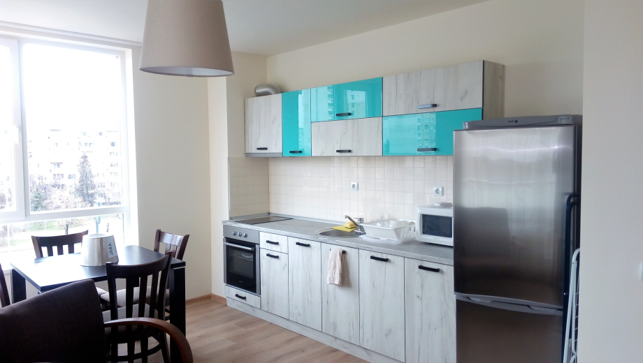 Напълно обзаведен двустаен апартамент в представителна нова сграда с видеонаблюдение в ж. к. Младост 3, непосредствено до спирка на метростанция Ал.Малинов. Разпределение: антре с портманто и ниша за пералня, хол с кухненски бокс /мека мебел, вградена напълно оборудвана кухня, маса за хранене със столове, климатик, LCD TV/+ балкон с южно изложение, самостоятелна спалня /спален комплект/, баня с тоалетна /душ-параван/, отопление на ТЕЦ + климатик; свободен за наемане веднага!!!