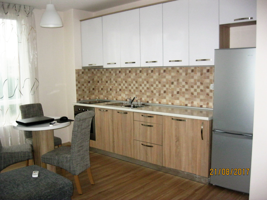 Напълно обзаведен двустаен апартамент в представителна нова сграда с видеонаблюдение в ж. к. Младост 3, непосредствено до спирка на метростанция Ал.Малинов; разпределение: хол с кухненски бокс /мека мебел, вградена напълно оборудвана кухня, маса за хранене със столове, климатик/ + балкон с южно изложение, самостоятелна спалня /спален комплект/, баня с тоалетна /душ-параван/, мокро помещение /пералня/;отопление на ТЕЦ + климатик; топъл и слънчев апартамент с ниски консумативни разходи!