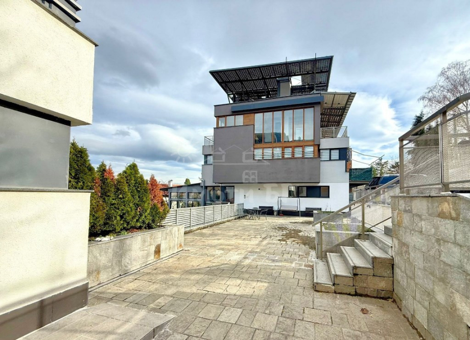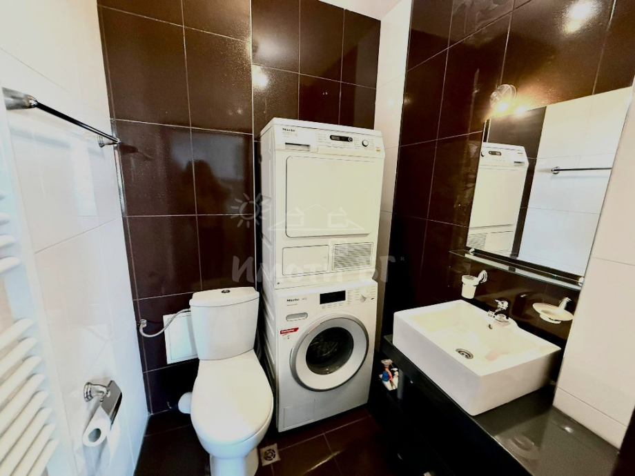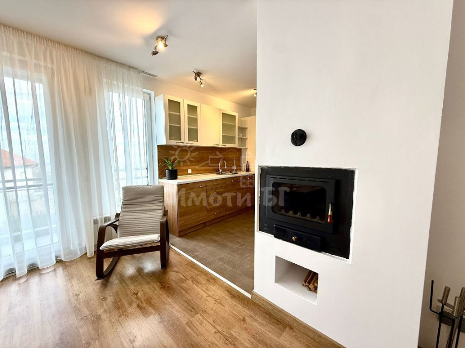 ИмотиБГ има удоволствието да предложи под наем уникален просторен двустаен апартамент тип мезонет в кокетен комплекс в кв. Симеоново. Жилището се състои от: обширен хол с кухня и трапезария с излаз на тераса и тоалетна за гости на първо ниво; на второ ниво, с достъп по удобна стълба, е разположена голяма спалня със собствена баня и излаз на прекрасна панорамна тераса с гледка към града. Отопление - посредством индивидуално газово котле, а на първо ниво има и естествена камина, която допринася уют. Жилището е стилно обзаведено с всичко необходимо (включително сушилня и съдомиялна машина). Разполага със СОТ система и окабеляване за интернет. Компплексът се състои от две сгради, общо пространство с пейки, открит басейн и фитнес на разположение на живущите. Има изградено видеонаблюдение и контрол на достъпа. Възможност за наем на подземно паркомясто с топла връзка.