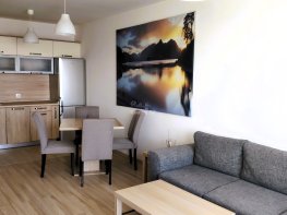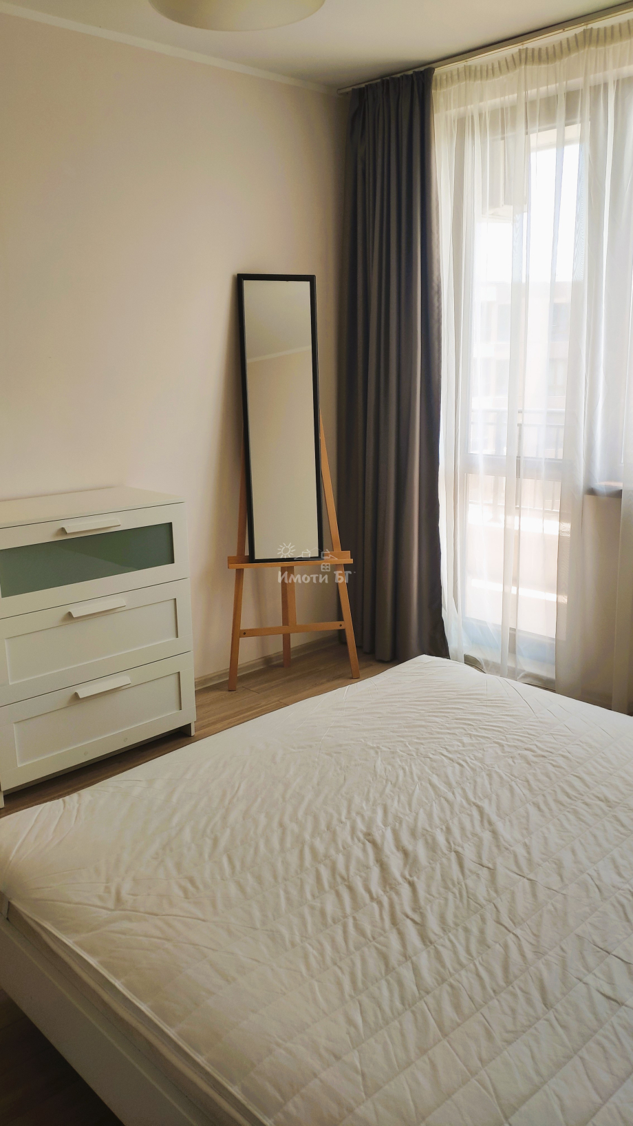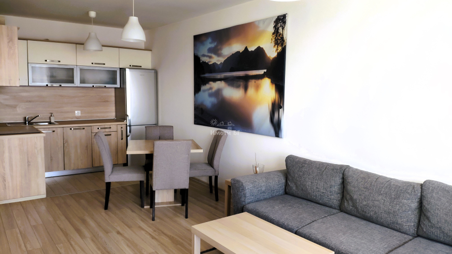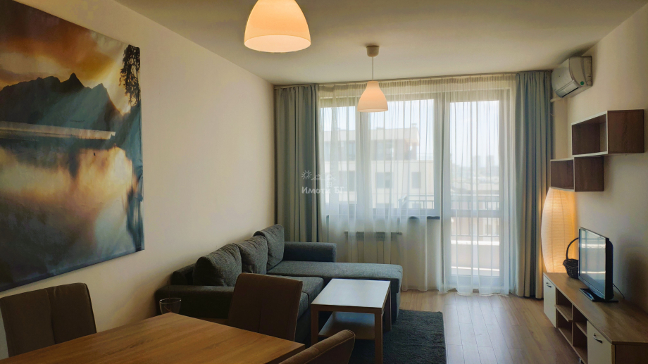 Отличен, напълно обзаведен двустаен апартамент в комплекс Феърплей /до Зимния дворец и НСА/; отлично поддържана сграда от 2016 година с денонощна охрана; разпределение: дневна с кухненски бокс и излаз на балкон към вътрешността на комплекса /изток/; самостоятелна спалня, баня с тоалетна и антре; подови настилки - ламиниран паркет, гранитогрес; баня и тоалетна - теракот, фаянс; отопление на ТЕЦ + климатик в дневната;