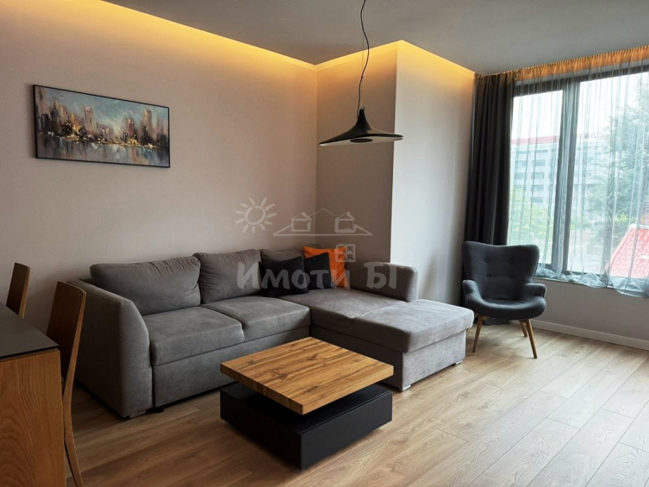 Имоти Бг има удоволствието да предложи НОВ просторен двустаен апартамент под наем. Перфектна локация - на метри от Мол София и метростанция, на 10 минути пешеходно разстояние от Президентството. Жилището е ситуирано на четвърти етаж в луксозна сграда - строителство 2023г. Разпределение: входно антре, обширен хол с кухня и трапезария, спалня, баня с тоалетна и тераса. Жилището е светло, с източно изложение. Отопление/ охлаждане посредством инверторни климатици висок клас. Предлага се напълно обзаведен и завършен по дизайнерски проект. Входът е с контрол на достъпа и видеодомофони. Има опция за наем на подземно паркомясто. Без домашни любимци. Свободен от 27.10.2025г. Огледи са възможни с предварителна уговорка.