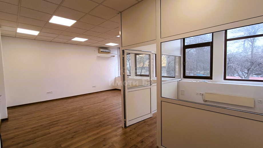 ИМОТИ БГ предлага под наем офис с отлично местоположение на бул. Никола Й.Вапцаров, в непосредствена близост до бул.Черни връх, метростанция Джеймс Баучер, трамвайни и автобусни спирки. Офисът е току-що освежен и е разположен на втори етаж в офисна сграда клас Б със самостоятелен вход. Разпределение: шест просторни и светли работни помещения, като някои от тях са с връзка помежду си; помещение с мивка, отредено за кухненски бокс и място за почивка; две тоалетни с умивалници в отлично състояние; ниша за склад. Отопление на ток с конвекторни радиатори + инверторни климатици във всяко помещение. Окабеляване за интернет и СОТ. Възможност за наемане на три външни паркоместа на цена от 80 EUR на месец. Такса поддръжка - 5 EUR на годишен принцип. ВСИЧКИ ЦЕНИ СА БЕЗ ДДС!!!