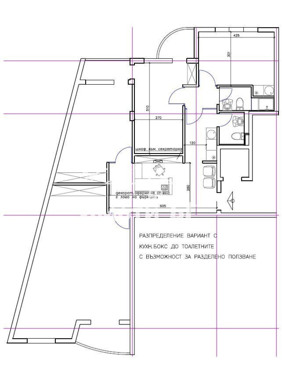 Околна среда: В непосредствена близост се намират Френският лицей „Виктор Юго“, както и магазини от веригите Kaufland и Fantastico. Данък смет и такса поддръжка са за сметка на наемателя.. Такса поддръжка  - 170 евро на месец. Възможност за наемане на подземен гараж с площ от 24 кв.м. на допълнителен месечен наем от 110 EUR и такса поддръжка на гаража от 120 EUR/година. Цените са без ДДС.