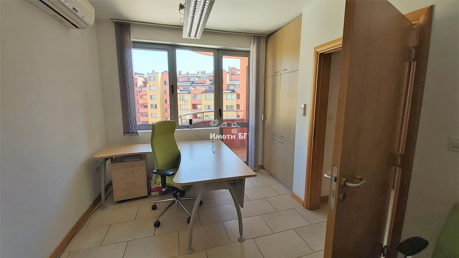 ИМОТИ БГ предлага напълно обзаведен офис в модерна офис сграда, разположена на кръстовището на бул. „Симеоновско шосе“ и ул. „проф. д-р Иван Странски“. Сградата разполага с отлично поддържани общи части, охрана и асансьор. Разпределение - офисното пространство е функционално организирано и включва: входна зона с рецепция; просторна заседателна зала; три самостоятелни кабинета, всеки с балкон; оборудван кухненски бокс; два санитарни възела. Технически характеристики: климатици във всяко помещение; централно отопление (ТЕЦ); пълно структурно окабеляване, система за контрол на достъпа и видеонаблюдение; жива охрана на входа на сградата. Офисът е модерен и функционален, напълно обзаведен с мебели и оборудване, подходящ за средно голям екип. Включва удобни бюра с достатъчно шкафове и чекмеджета за съхранение и организация на документи. Интериорът е решен в съвременен стил и цветова гама, създаваща професионална и мотивираща работна атмосфера. Разпределението позволява гъвкавост при използването на площите – както за общо, така и за индивидуално ползване от различни отдели. Транспортна достъпност: Пред сградата има спирки на автобусни линии 102, 805 и 67, които осигуряват удобна връзка с центъра на София и метро линии 1 и 2.
