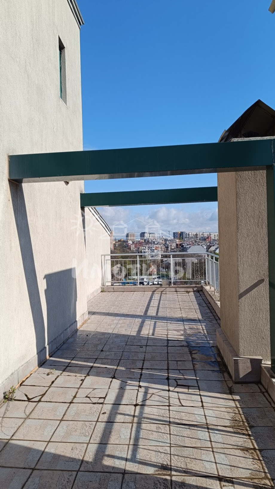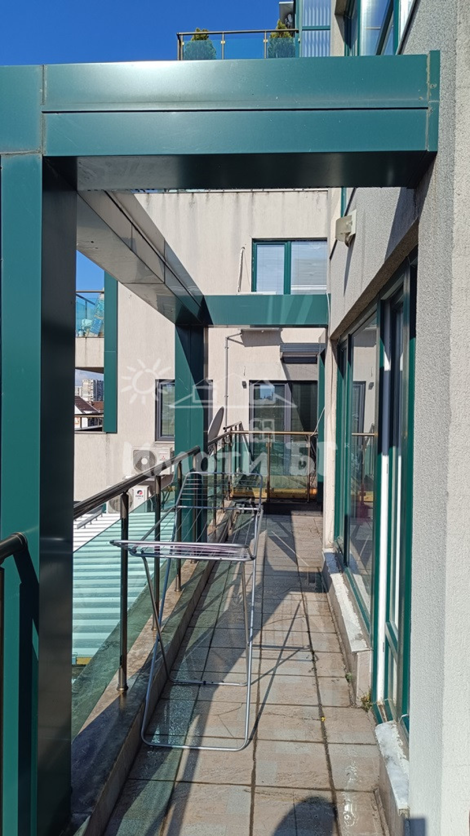 ИМОТИ БГ продава светъл и панорамен двустаен апартамент на две нива на бул.Ал.Стамболийски, в непосредствена близост до МОЛ София, парк Възраждане, трамвайни спирки и на пешеходно разстояние от метростанция Опълченска. Имотът е разположен в добре поддържана тухлена сграда с асансьор от 2010 година. Статут - АТЕЛИЕ със застроена площ от 48,96 кв.м. + прилежаща открита тераса с площ от 78,97 кв.м. Разпределение: І-во ниво - малка дневна с кухненски бокс и излаз на тераса с панорамна гледка към Витоша, ІІ-ро ниво - спалня, баня + WC. Отопление на ток с климатици; Изложение - юг. Подови настилки - ламиниран паркет, теракот.