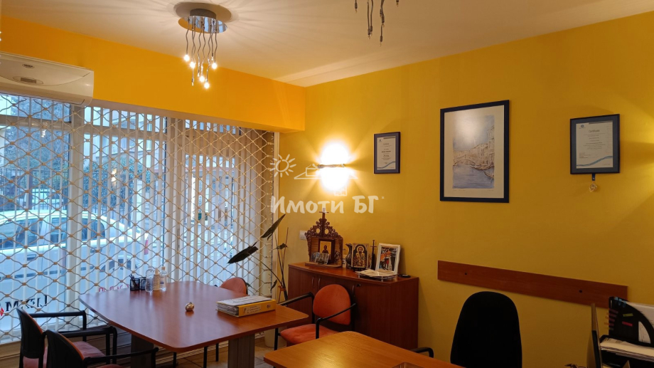 ИМОТИ БГ предлага ъглово помещение на две нива със статут на магазин, непосредствено до Медицинска академия, Пирогов и 19-то СУ. Имотът е в представителна сграда от 2004 година с функционално разпределение и два входа. Застроена площ - 173,16 кв.м. Разпределение: I-во ниво /кота 0/ с площ от 100,16 кв.м и височина 2,70 м включващо заседателна зала с директен вход от улицата, голямо работно помещение с възможност за обособяване на няколко работни къта и място за рецепция, оборудван кухненски бокс, тоалетна. II-ро ниво /сутерен/ с площ от 73 кв.м и височина от 2,65 м, включващо две помещения с английски двор, склад и два санитарни възела. Отопление на ТЕЦ + климатици. Подови настилки - гранитогрес в работните помещения, теракот и фаянс в сервизните помещения. Обезопасяване със СОТ и външни ролетни щори. Имотът е в много добро състояние, но има нужда от освежителен ремонт. В момента се ползва като офис, но е подходящ за всякакви цели - офис, представителство, медицински или езиков център. Възможност за закупуване на съседния магазин с площ от 98,13 кв.м.