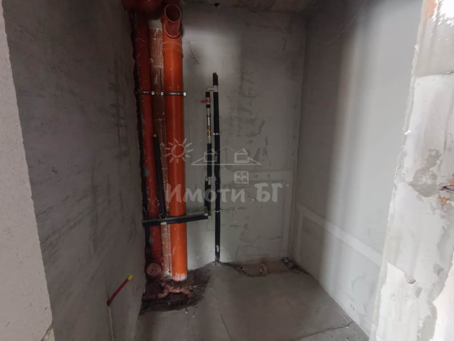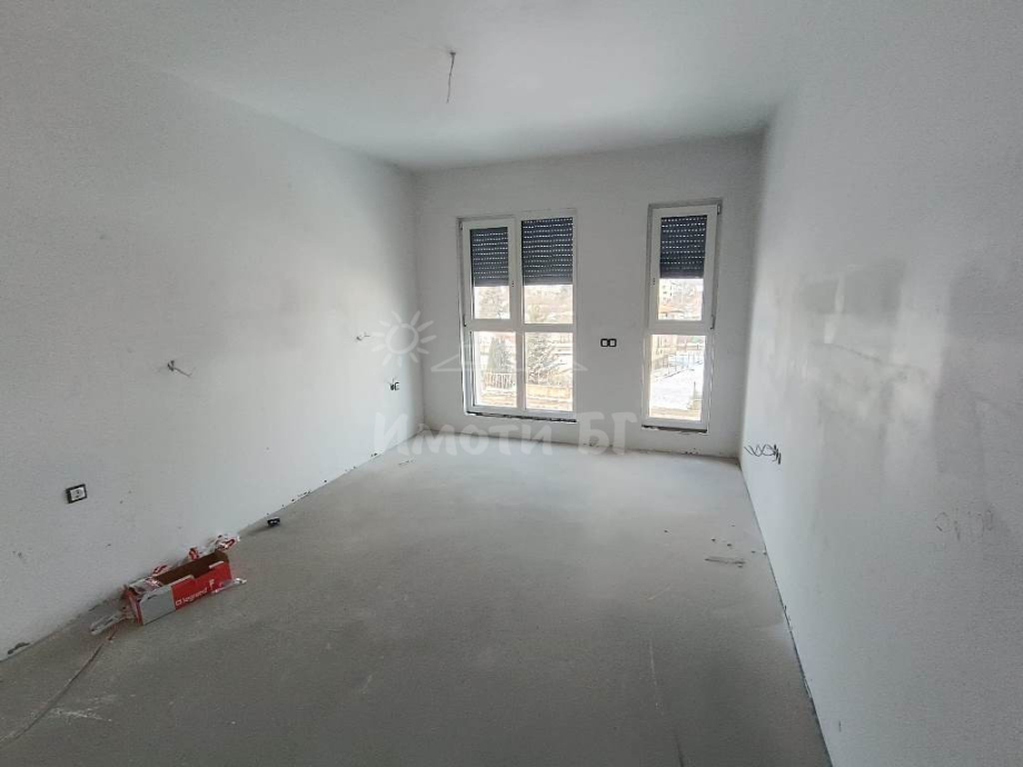 ИмотиБГ предлага тристаен апартамент в малка бутикова сграда с Акт 15. Разрешение за въвеждане в експлоатация се очаква до края на годината. Застроена площ 99,45 кв.м. Жилището е ситуирано на втори жилищен етаж със следното разпределение: входно антре, баня с тоалетна, всекидневна с кухненска част, втора баня с тоалетна, спалня, втора спалня и тераса. Издава се на шпакловка и замазка, с входна врата, 15см изолация, външни щори и поставено газово котле. Има възможност за завършване до ключ. Сградата е с 9 апартамента, видеонаблюдение и подземен паркинг. Възможност за покупка на двустаен и многостаен апартамент, както и подземни паркоместа и склад. Имотът се намира на главната улица на гр. Банкя.