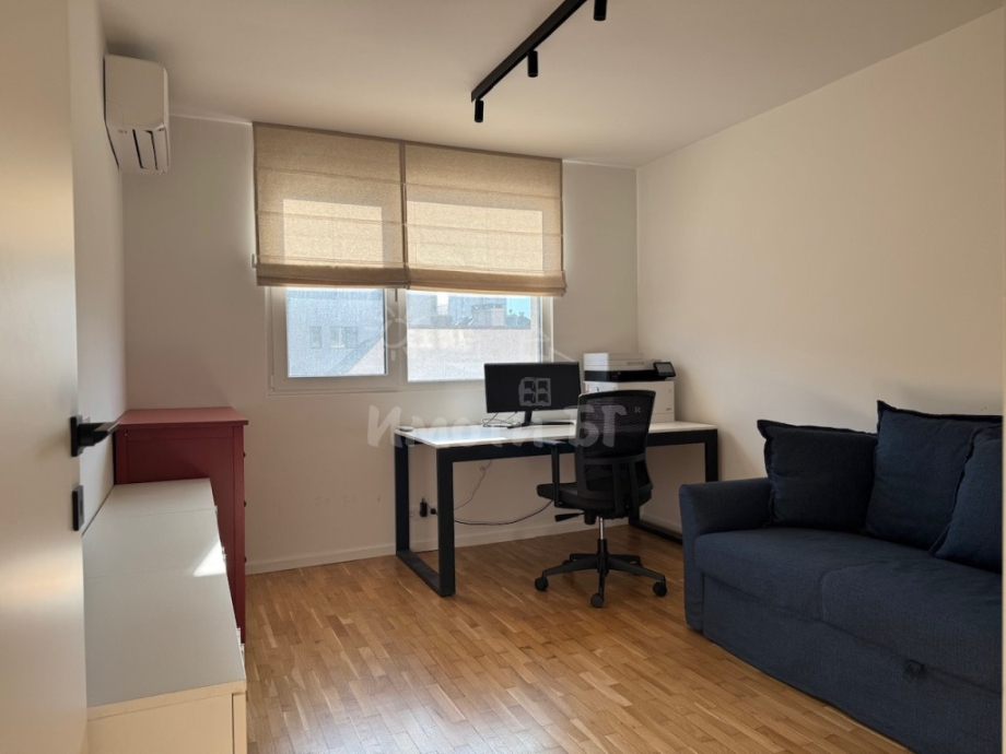 ИмотиБГ предлага ексклузивно луксозен тристаен апартамент в тухлена сграда, основно ремонтиран и завършен по дизайнерски проект. Жилището се намира на 5-ти жилищен етаж и е със следното разпределение: просторен хол с кухненска част и тераса, родителска спалня със самостоятелна баня с тоалетна и тераса, втора спалня обособена като офис към момента, дрешник, склад, мокро помещение и втора баня с тоалетна. Имотът се предлага обзаведен. Отоплението е посредством висок клас климатици. Дограмите са ПВЦ с троен стъклопакет. Настилки: естествен паркет, микроцимент и гранитогрес. Към имота има и мазе. Метростанция и пазар Красно село са в непосредствена близост. Прилагаме разпределение, както и виртуална разходка с линка отдолу.