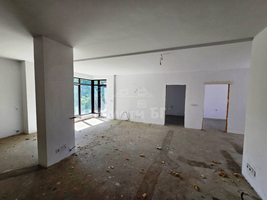Имотът е ситуиран на 2-ри етаж от общо 7 и е с обща площ от 129 кв.м, разпределена така, че да осигурява усещане за простор и комфорт. Разпределение: входно андре, хол с кухненски бокс и трапезария, три спални, две бани с тоалетни, складово помещение и тераса. Апартаментът се предлага на шпакловка и замазка. Съществува и опция за преустройство в четиристаен апартамент. Големите прозорци осигуряват изобилие от естествена светлина и разкриват приятна панорамна гледка към Витоша.