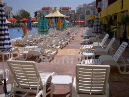 БЕЗ КОМИСИОННА ОТ КУПУВАЧА! Обзаведен апартамент в комплекс Елит 3. Ваканционно селище Елит 3 се намира в южната част на к. к. Слънчев бряг срещу Cacao-Beach, само на 150 метра от плажната ивица. Застроен на терен от 13 дка, комплексът е от затворен тип и се охранява целогодишно. Ниското строителство и плътност на застрояване, китната и богата зеленина създават усещането за непосредствен контакт с природата, нещо което все по-трудно се намира в к. к. Слънчев бряг. Селището разполага с голям басейн за големи и деца, кафе, ресторант, pool-bar, интернет клуб, фитнес зала магазин, салон за красота, рецепция, места за паркиране. Апартамента е функционален и светъл, има кородор, спалня, дневна с кухненски бокс, тераса, WC. Апартамента е обзаведен - кухня, хладилник, керамични котлони, микровълнова, климатици във всяка стая. С акт 16, собствени ел и вик партиди. Възможност за отдаване под наем. Годишна такса за подръжка - 6 евро / кв. м. . ОТЛИЧНА ИНВЕСТИЦИЯ!