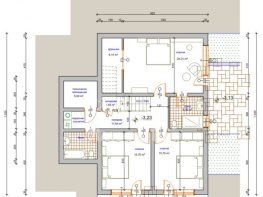 Долно ниво: Родителска спалня със собствена баня и дрешник, две спални, които споделят баня, перално помещение, мокро помещение.