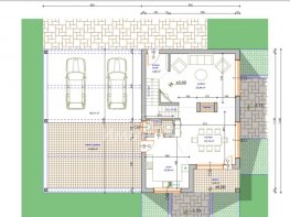 Горно ниво се състои от: обширен хол с трапезария и кухня с място за камина, тоалетна за гости, просторна зимна градина, 2 гаража.