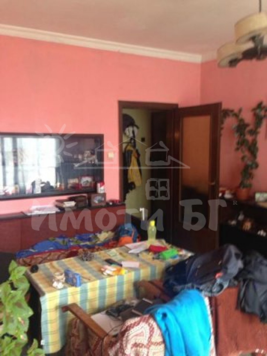Тристаен преходен апартамент в масивна поддържана тухлена сграда от 50-те години. Входът е със сменена входна врата, чист и поддържан. Апартаментът се намира на трети етаж над партер, като над него се намира таванския етаж. Сградата няма асансьор. Сменени са вертикалните щрангове, както и ел. инсталацията. РАЗПРЕДЕЛЕНИЕ: входно антре, тъмен вестибюл с хол, преход към едната спалня, втората спалня е непреходна от коридора, кухня с балкон, баня и тоалетна. Изложение изток-юг. Към имота има мазе 12 кв.м. и таван 14 кв.м., както и ид. части от земята. Жилището се нуждае от ремонт. САМО ЗА ЧАСТНИ ЛИЦА!